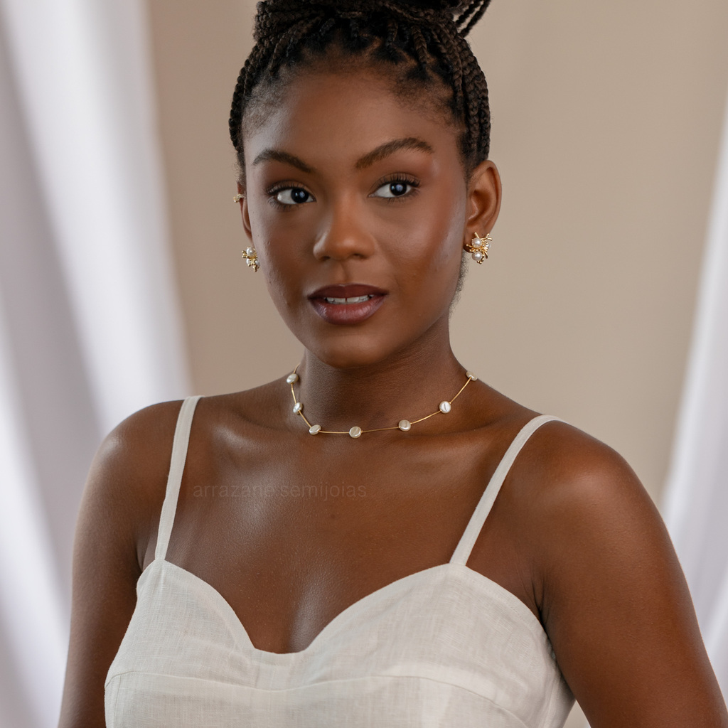 Chocker em Pérolas banhada em Ouro 18K premium, com 10 milésimos (camadas de ouro).